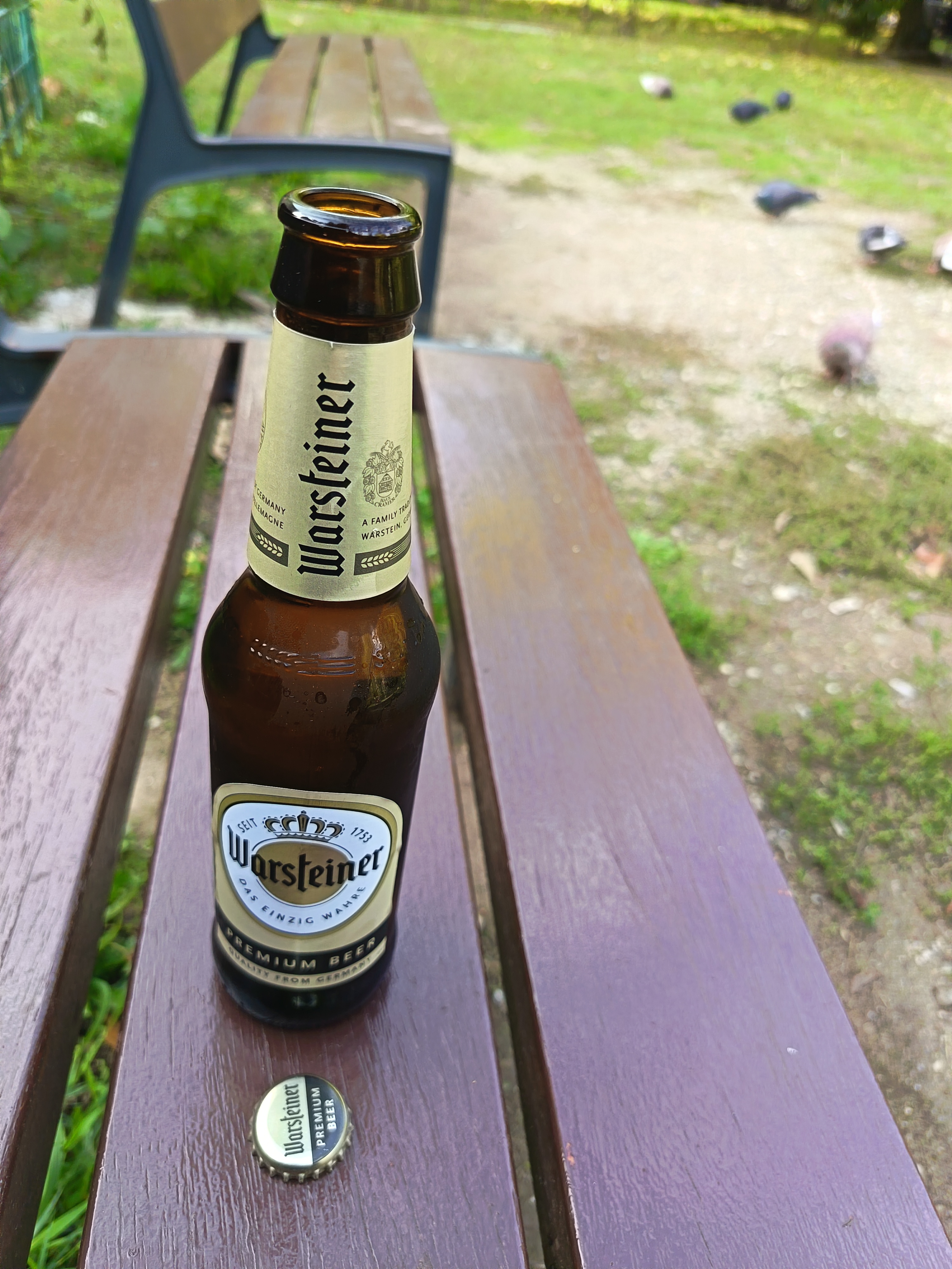 Pauza de bere pe bancuta.