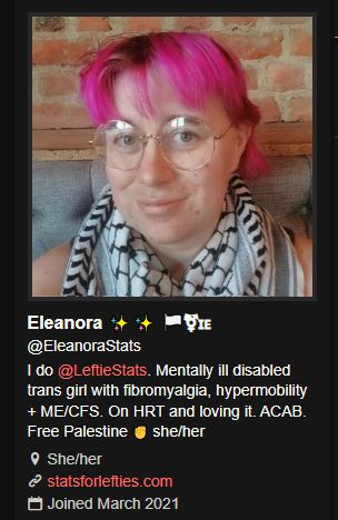 >>215968525>mentally ill, transredundant>fybromalgiamade up disease for people with shite lifestyles>hypermobilitynot an illness, stfu>on HRTyou'll kill yourself at 50 retard it's not too late>ACABretard>Free palestinebased>she/heryou're a fucking dude fuck off