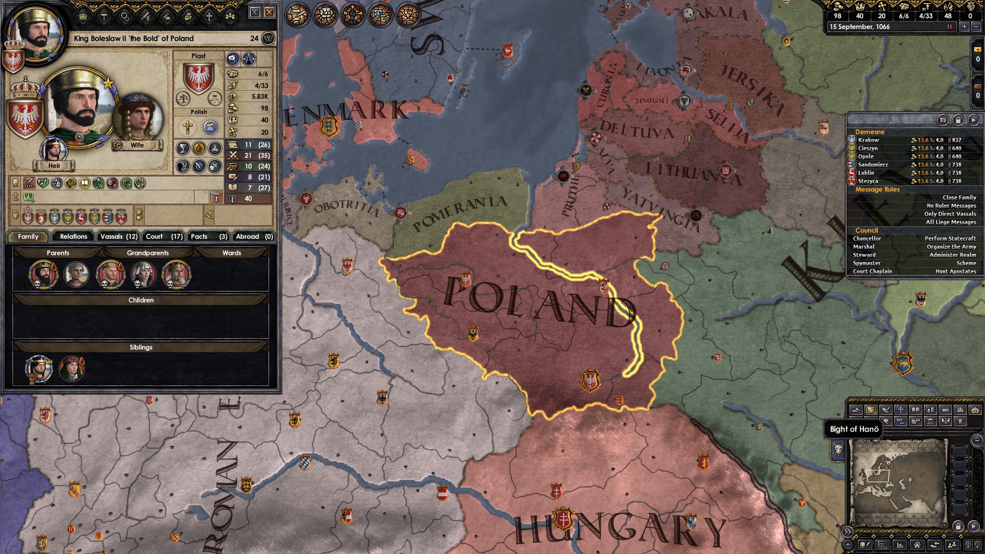 Fuck it, new campaign. I haven't played in the Slav region that much so I went for Poland. My aim is to form the "Slavic Union Empire". We'll see.