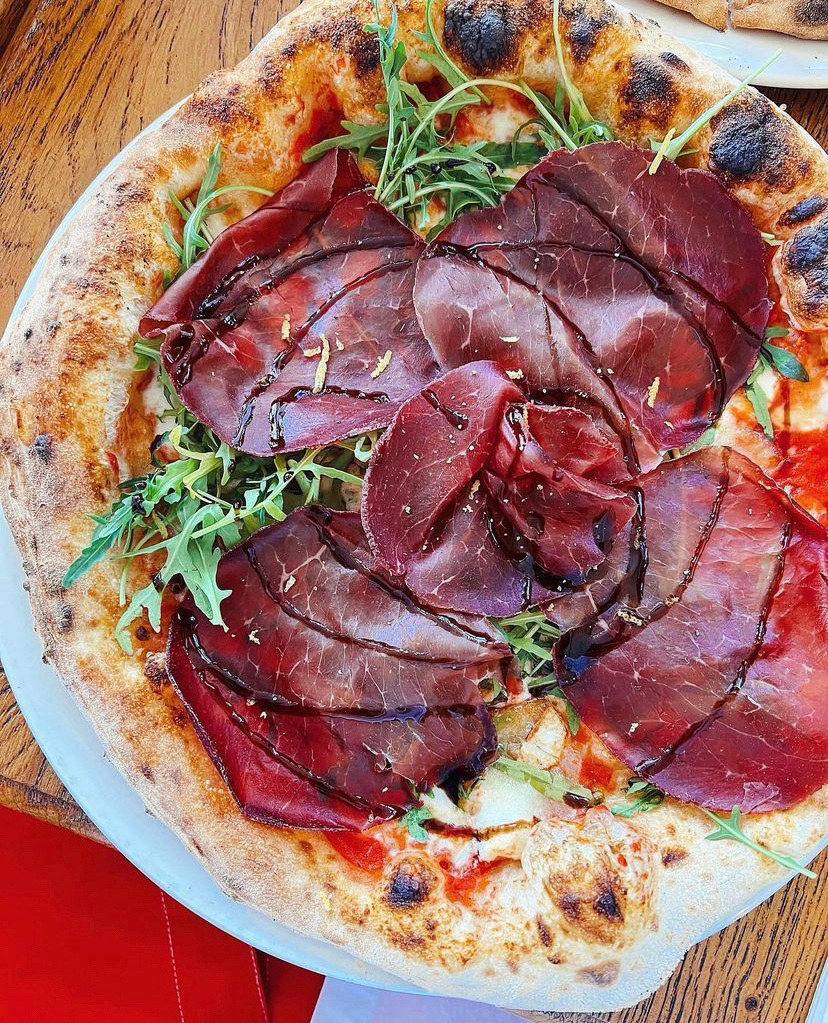 Todays runt meal consumed - pastrami, sourdough, watermelon, grapes, and shredded red cabbage with olive oil and raisins
