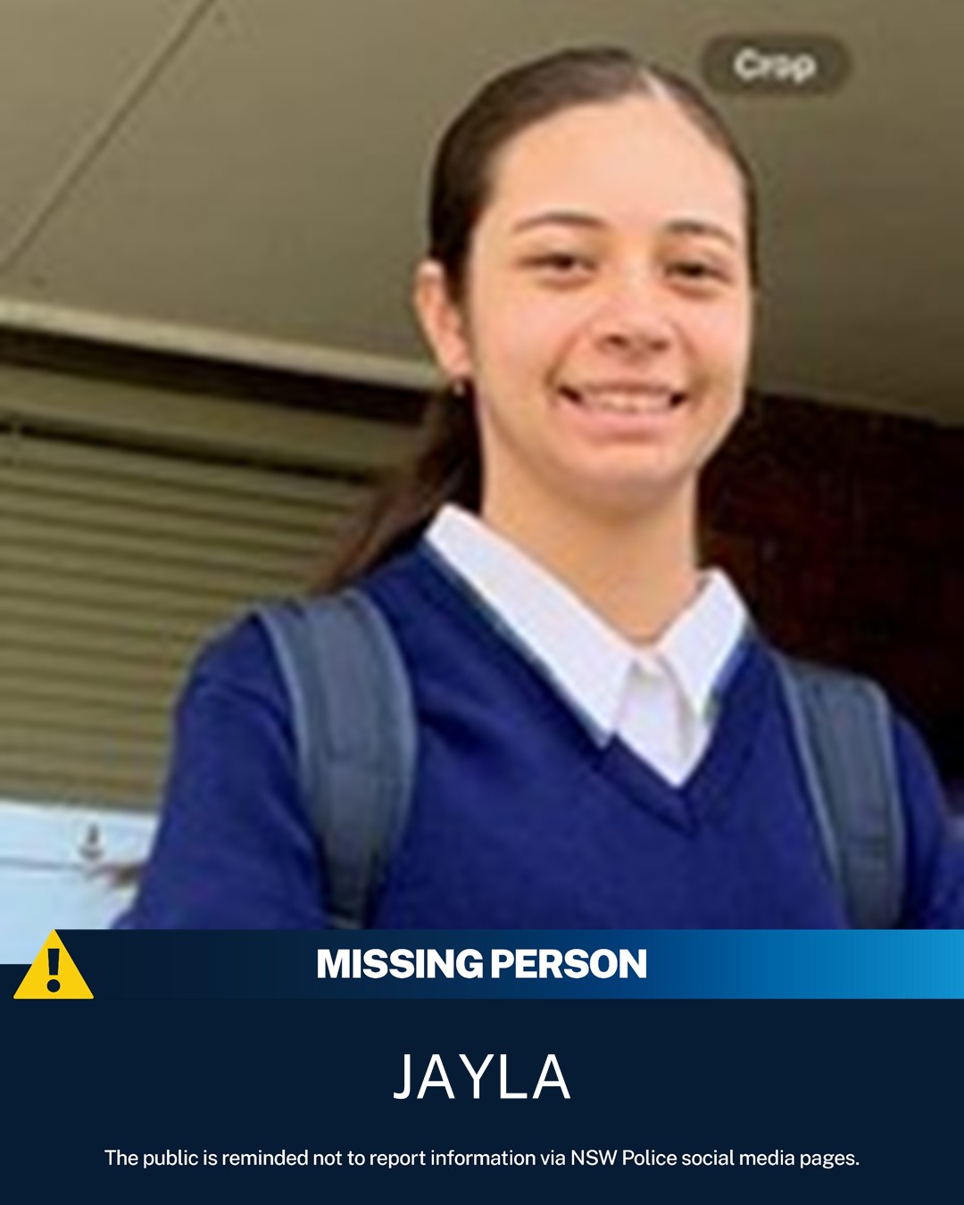 Jayla, aged 14, was last seen in Greystanes at 5.00pm on Saturday, 18 October 2025.