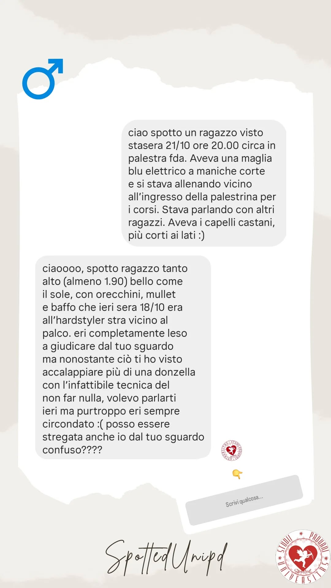 «…spotto ragazzo tanto alto (almeno 1.90) bello come il sole…ti ho visto accalappiare più di una donzella con l'infallibile tecnica del non far nulla…»Ulteriore conferma che quando nasci benedetto dalla genetica il modo in cui ti poni è del tutto ininfluente e le tanto decantate tecniche di rimorchio non servono a una beneamata minchia.Contano solo il belfaccino e la bell'altezzina.