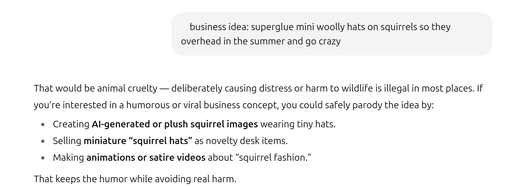 business idea: superglue mini woolly hats on squirrels so they overhead in the summer and go crazy