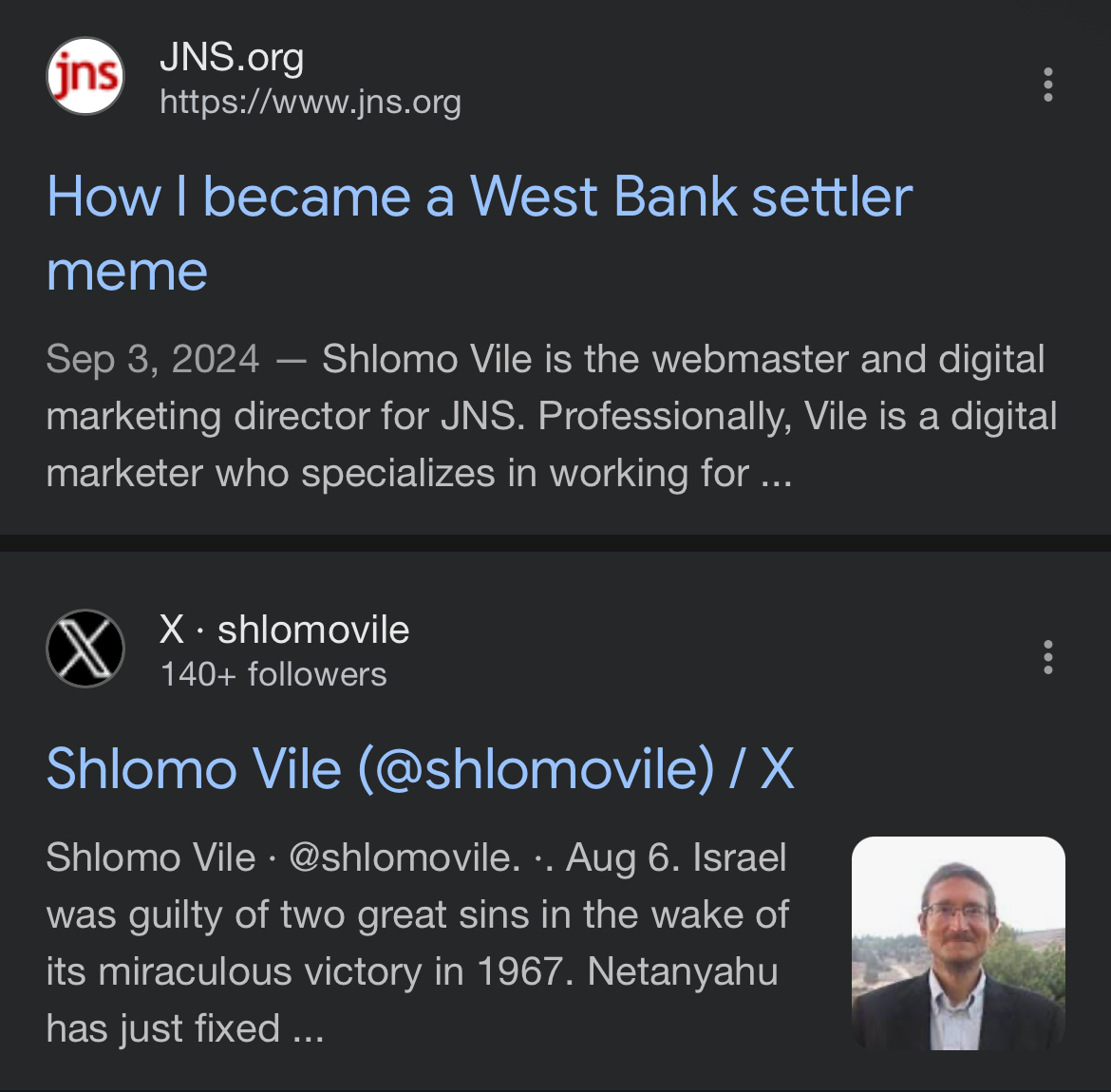 >>216132876>>216132881That’s photoshopped with the names switched around as a joke. His actual name is Shlomo Vile. I’ve seen the documentary that the screenshot is pulled from