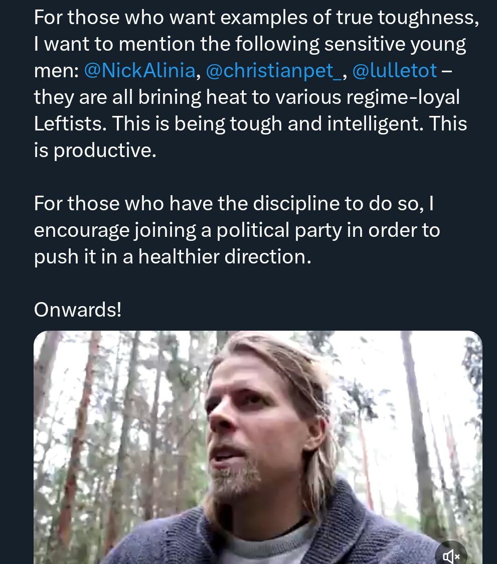 >>216184251Så är det. Har lämnat SD sen länge nu men vänstertomtar blir triggade om man inte deltar i deras extrema PK'ism, finns ingen som helst nyansering av deras världsbild.