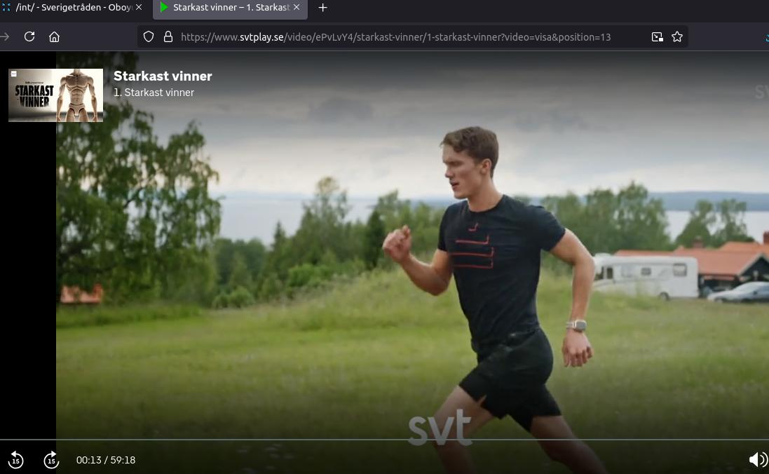 >kollegorna pratade om "starkast vinner" på svt så började titta nu>första som händer redan i introt är en DYEL som springer i en Tyngre t-shirtasg