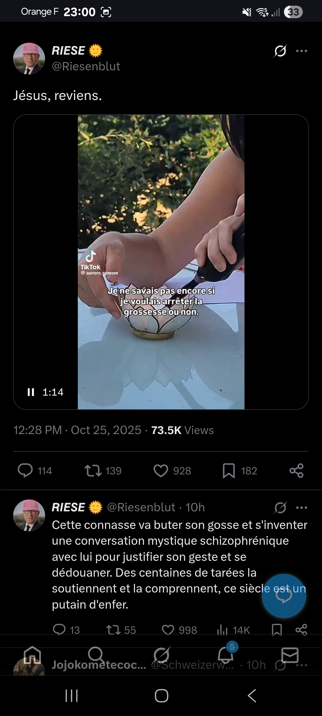 En.voyant le procès de la tueuse de lola je repense à son père qui est "mort de chagrin" au lieu d'aller éclater des bougnoules à coup de 12Ça m'a fait penser aussi au père d'une amie de ma soeur le gars a fait une depression quand elle s'est mise en.couple avec un noir bodobuildé d'un mètre soixante et de 10/15 ans de plus qu'elleLe mec allait dans ma salle et il lme faisait toujours penser a la grosse docteur noire dans greys anatomy meme taille meme poid meme phénotype Bref, des papas blancs qui se laissent mourir plutôt que de tuer c'est vraiment symptômatique de notre moribonderie actuelleJ'arrive toujours pas à savoir si c'est culturel ou génétique à ce point Je sais pas si c'est fini mais ça sent le sapin quand même