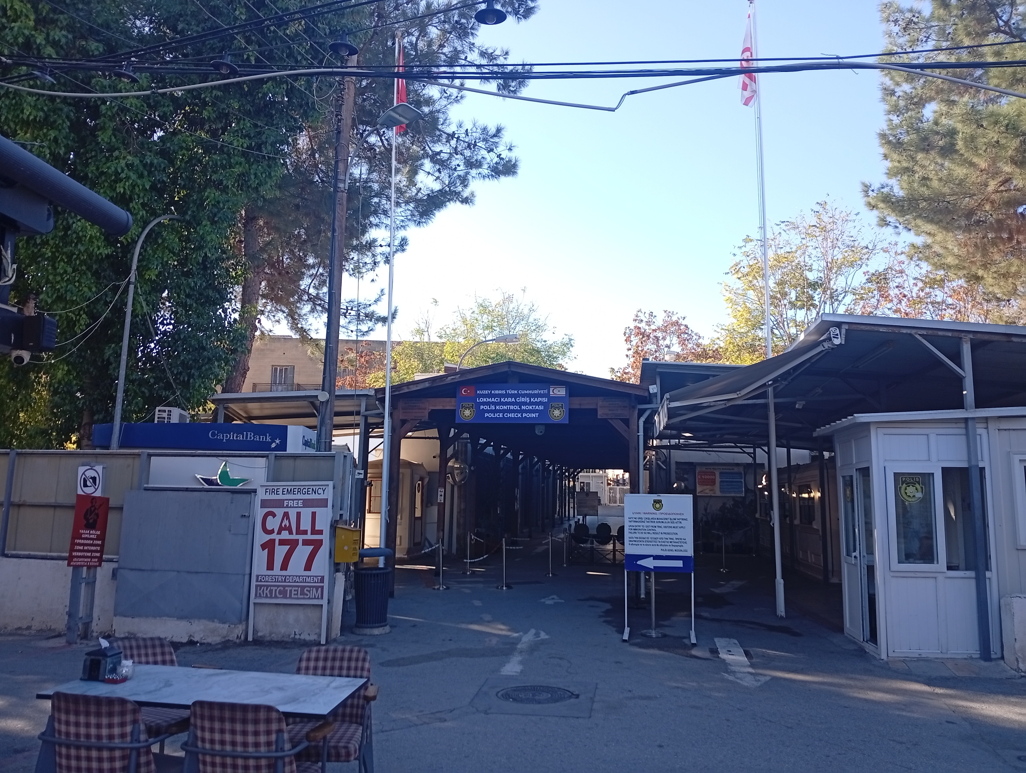jännästi kulkee eun ulkoraja keskellä kaupungin pää katua tästä sattui kommellusta aamusella etsin antalian lento kentän kotimaan terminaalista turhaan minun lentoa pohjois kypros ei olekkaan osa turkkia vaan nimellisesti oma valtionsa piti ottaa bussi toiseen terminaaliin ja kulkea passi tarkastuksen kautta juoksuksihan se meni vilkasta täynnä turisteja jo viideltä aamuyöstä olivat sentään kilttejä ja antoivat etuilla