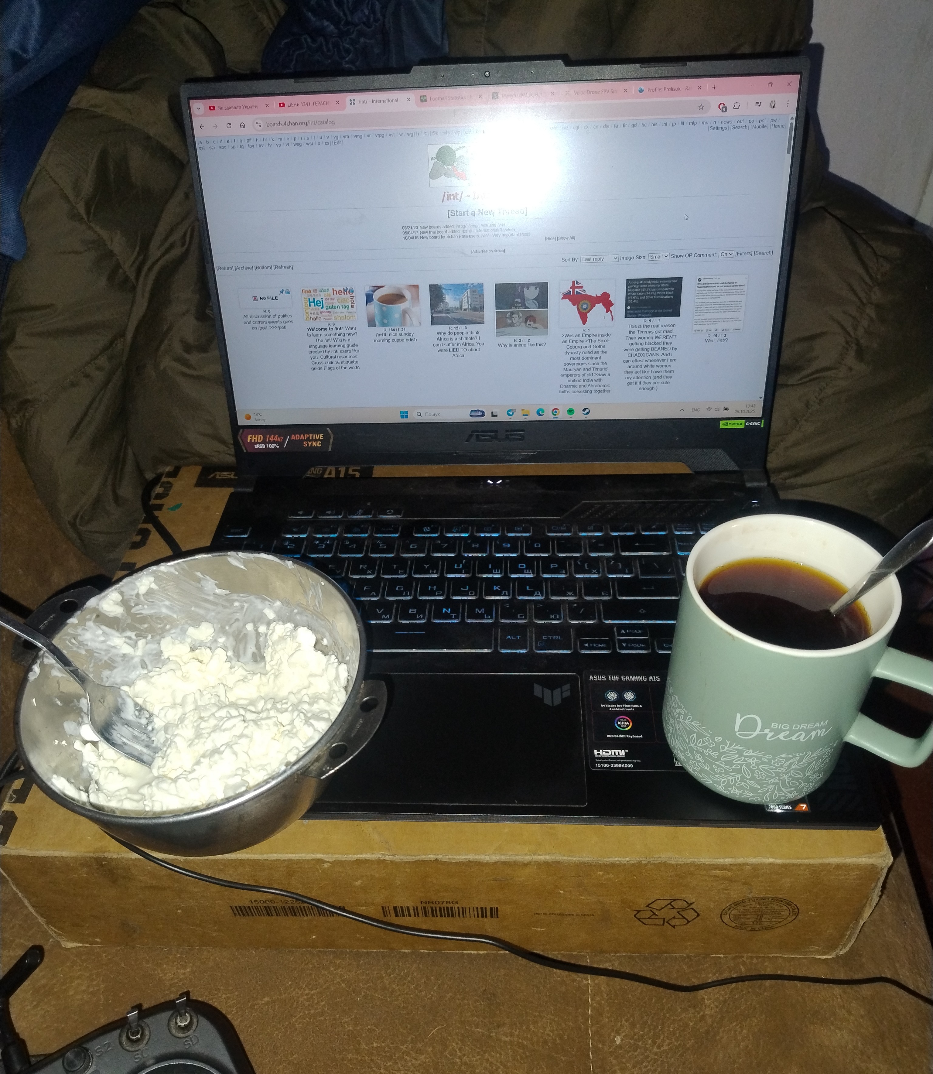 Tea. Cottage cheese with some sour cream and honey.Back to Wellbutrin. I think I require it for my fucked sleep schedule in army, even though it has no mood effects.