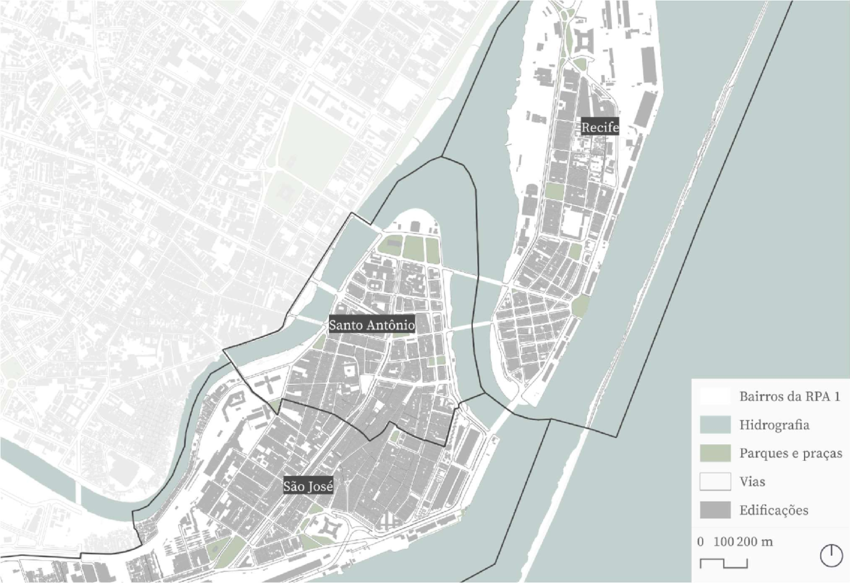 Mapa da área do Recife Antigo em 2016