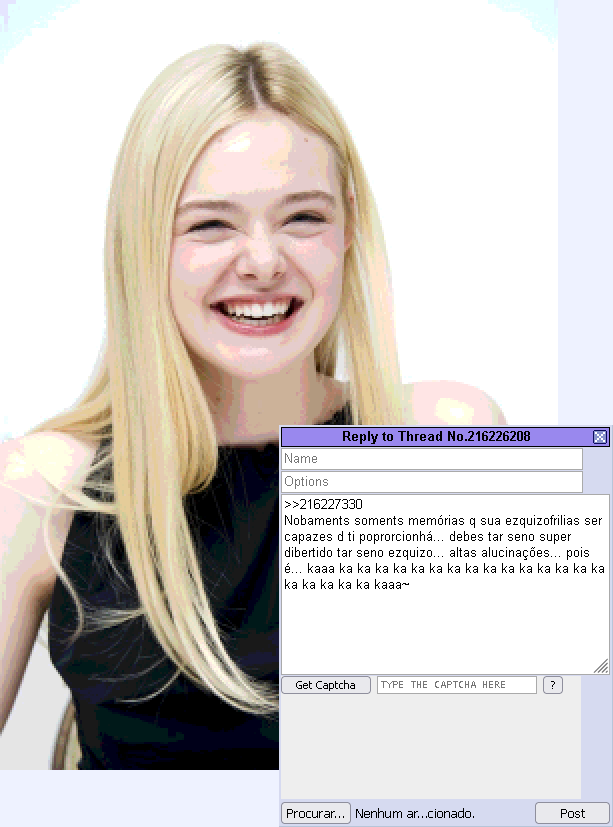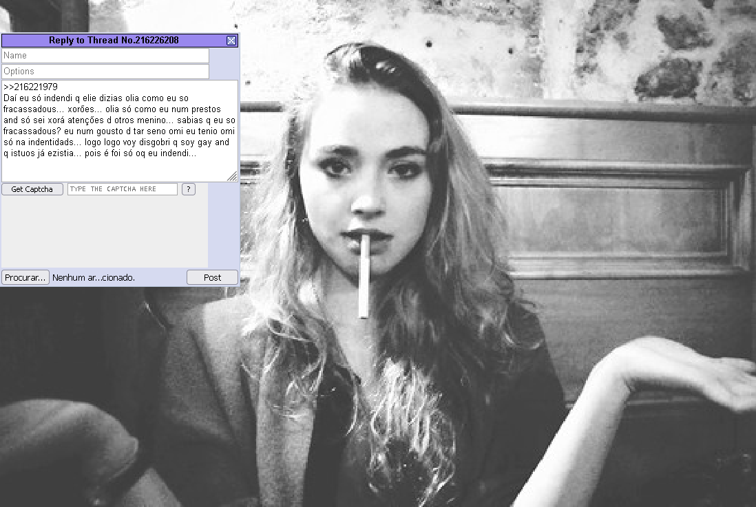 >>216232451>modnão>Por quê?porque eu posso e porque a frustração dela tentando postar aqui de qualquer forma me entretémpra você ver como esse site tá abandonado, uso o mesmo script e os mesmos proxies pra fazer isso há uns dois anos e continua funcionando