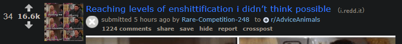 Reddit is more Zionist than Zuck's sites.That cesspit is fucking Israeli astroturfed to fuck.>r/WorldNews, front page sub, egregiously pro-Israel>posts on the front page about Arabs are curated to reinforce negative stereotypes>(polygamy, extreme wealth or poverty depending on the day, cousin marriage, reckless driving, terrorism, fundamentalism)