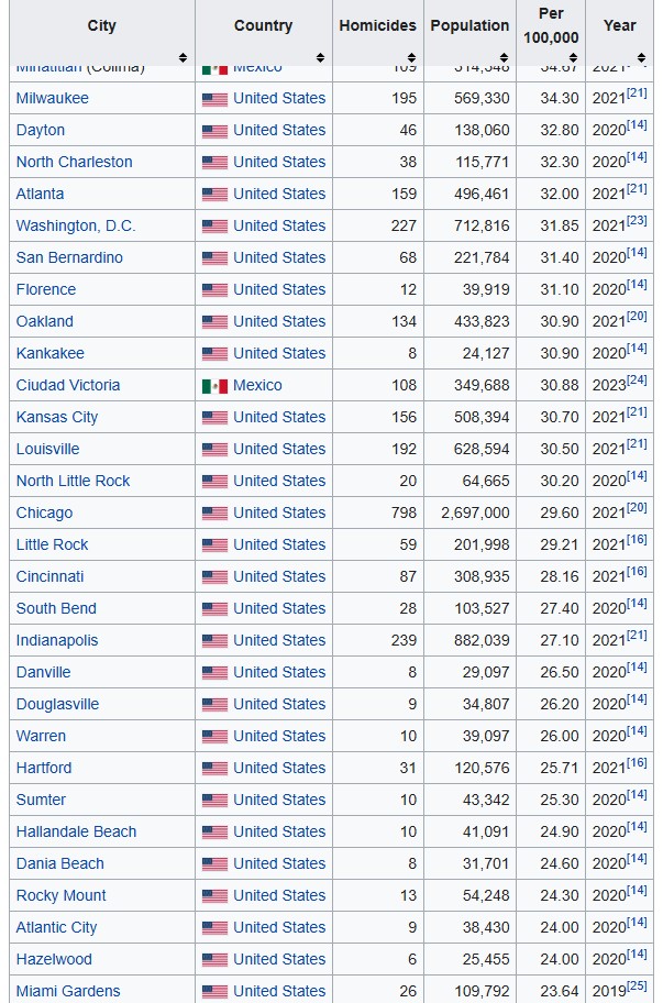 >>216273748Yeah okay retard https://en.wikipedia.org/wiki/List_of_cities_by_homicide_rate