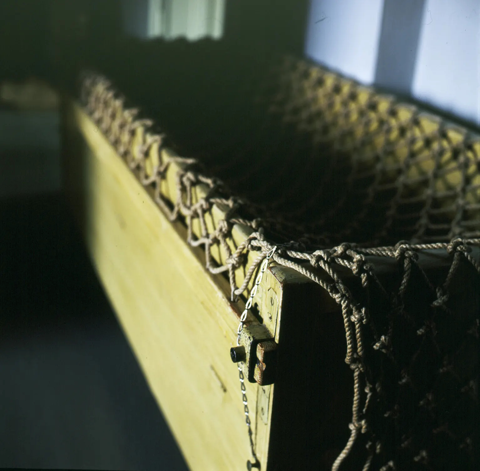 >Helsingin yliopistomuseo. "Hullun arkku", verkkosänky, jonne mielisairas potilas suljettiin rauhoittumaan. Nikkilän sairaalasta, ollut käytössä ainakin 1910- ja 1920-luvulla.pääsispä tonne lepäämään