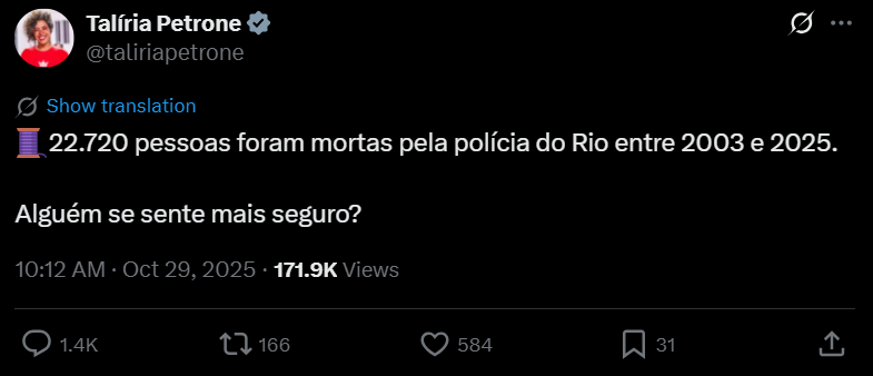 >>216318371Não chega nem perto do homicídio anual no BrasilPolícia mata é pouco traficante
