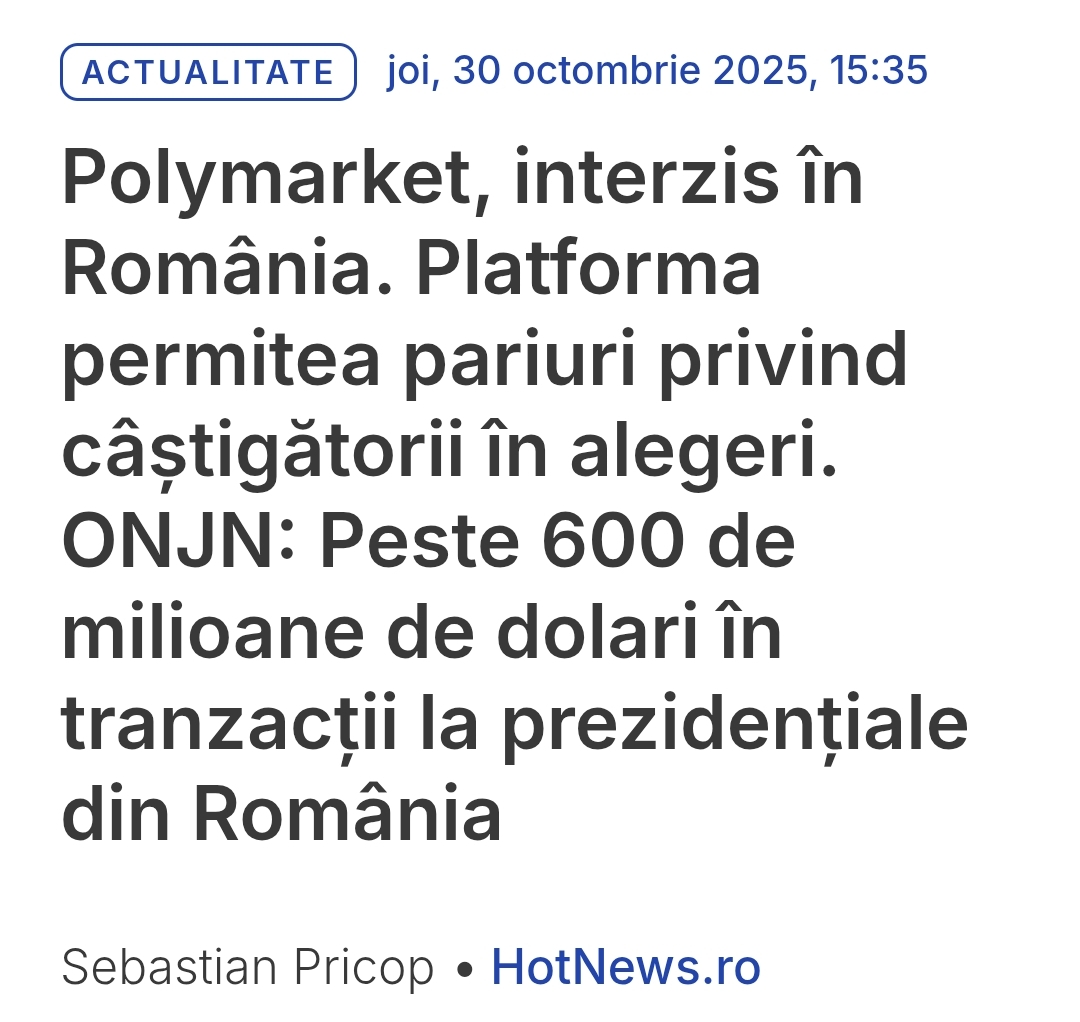 Au interzis polymarket in Romania. Aveti grija. Puteti lua amenda de 5000-10000 lei daca continuati sa il folositi. >>216332792Jocul e din 2019 anon.