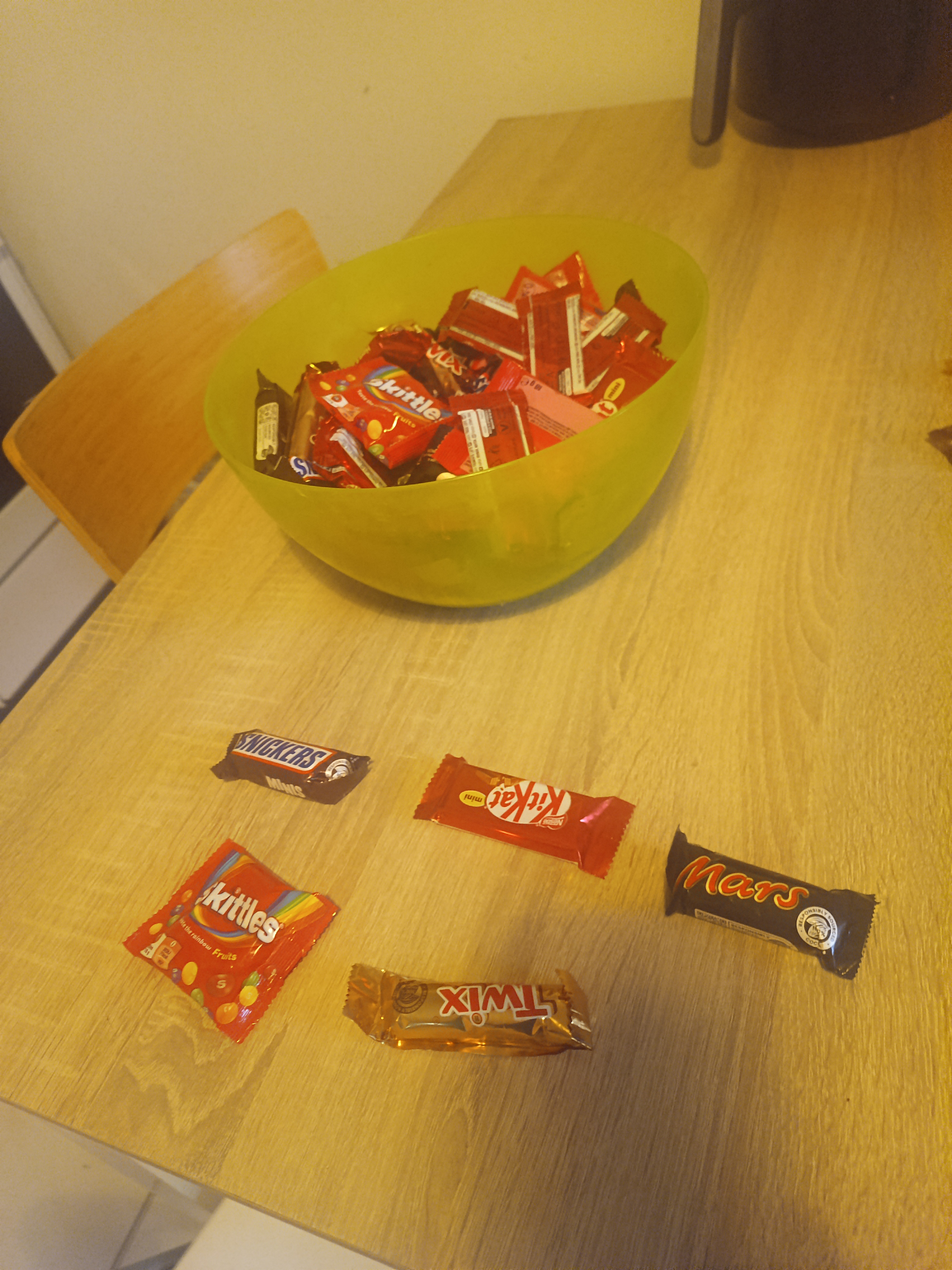 none i bought like 30 candy bars from lidl and sklavenitis and ate them all on my own! they were on discount because of halloween