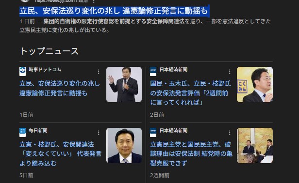 もう どんどん めくれて来てるわなとらちゃんが 韓国左(メディアが中国北朝鮮の傀儡と呼ぶ)の李ちゃんに 原子力潜水艦の建造許可を出すと同時に…日本では 北朝鮮の傀儡と言われる立憲が (米との)安全保障関連法を 合憲って言いだしたろ要するに 何が 起こってるか? って言うと…仕上げに 近づいてきたから もう true color を出してきた…のかなーーーー知らんけど(ウッシッシッシ)