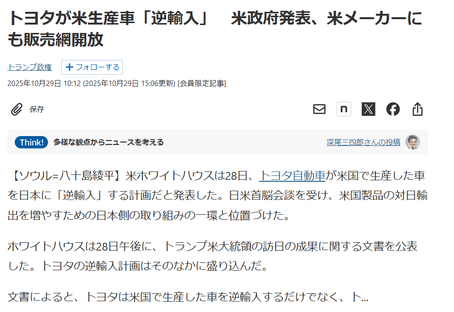 All the money Toyota made from the weak yen is going to America, so please keep that in mind.