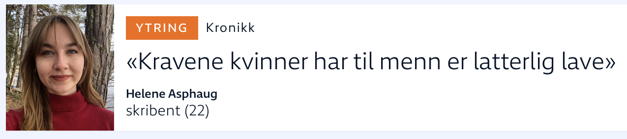 >>216386593>Kanskje er det ikke så merkelig at man føler seg tøffere i demonstrasjoner i gatene med medsøstrene sine – for lik lønn, selvbestemt abort og retten til å ligge rundt som man vil – enn når man står alene overfor partneren sin og ber dem huske å ta ut søpla eller lage middag.