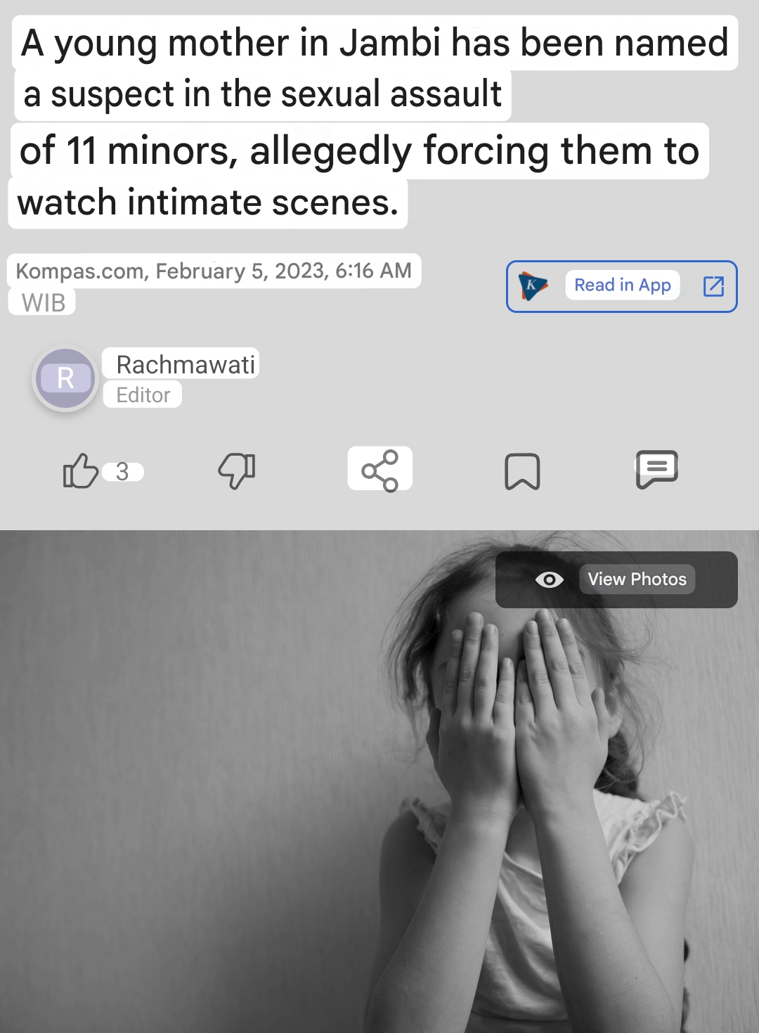 >>216418027Kadang2 baca berita begini ragu beneran atau kgk. Dari pihak pelaku, korban bisa bohong. Pas di tangan [redacted] bisa diputer balik. Pas udah nyampe hp kita, entahlah udah jadi apa. Kaya permainan pesan berantai.