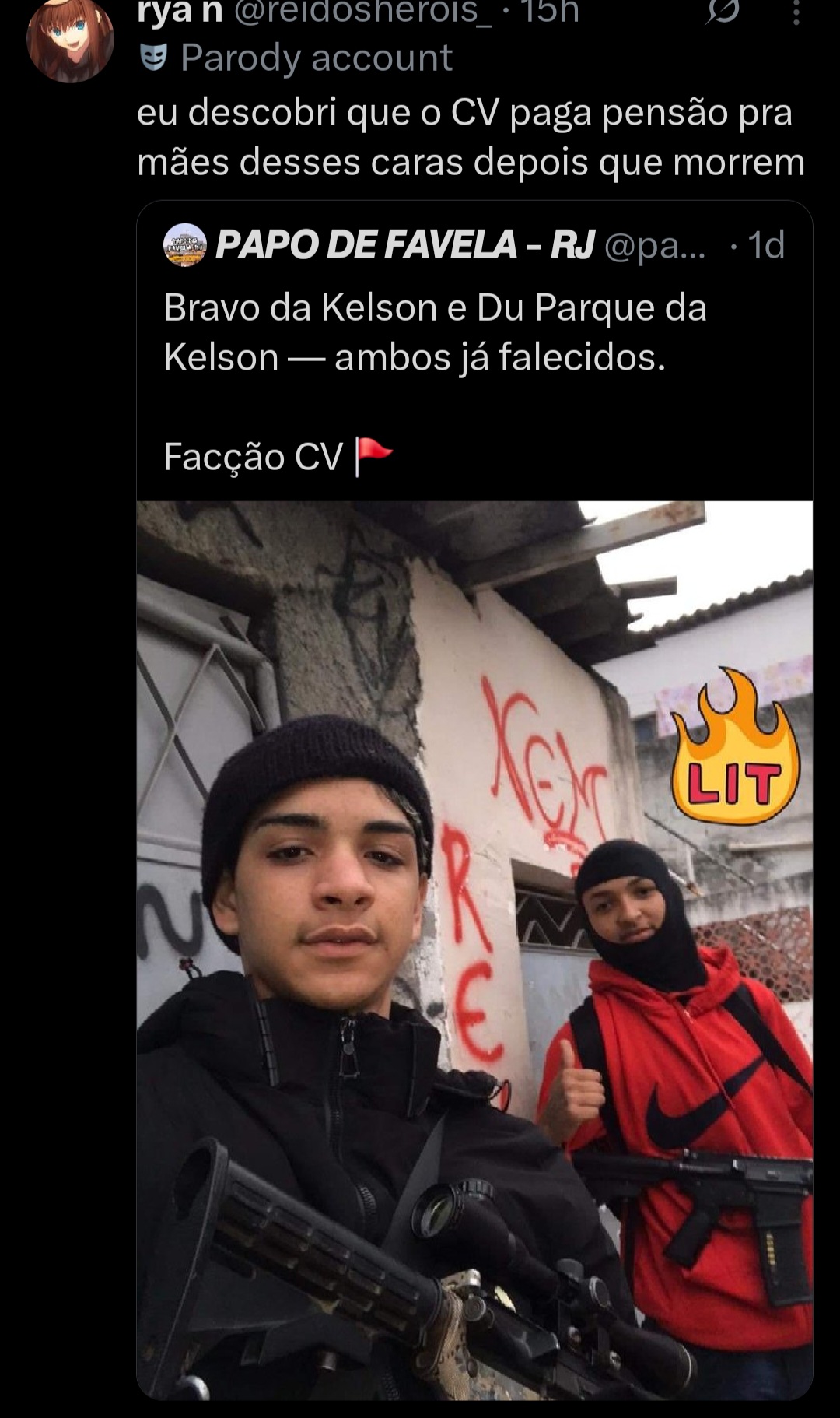 Só agora eu entendi que os caras estavam de cabelo vermelho porque eram do comando VERMELHO