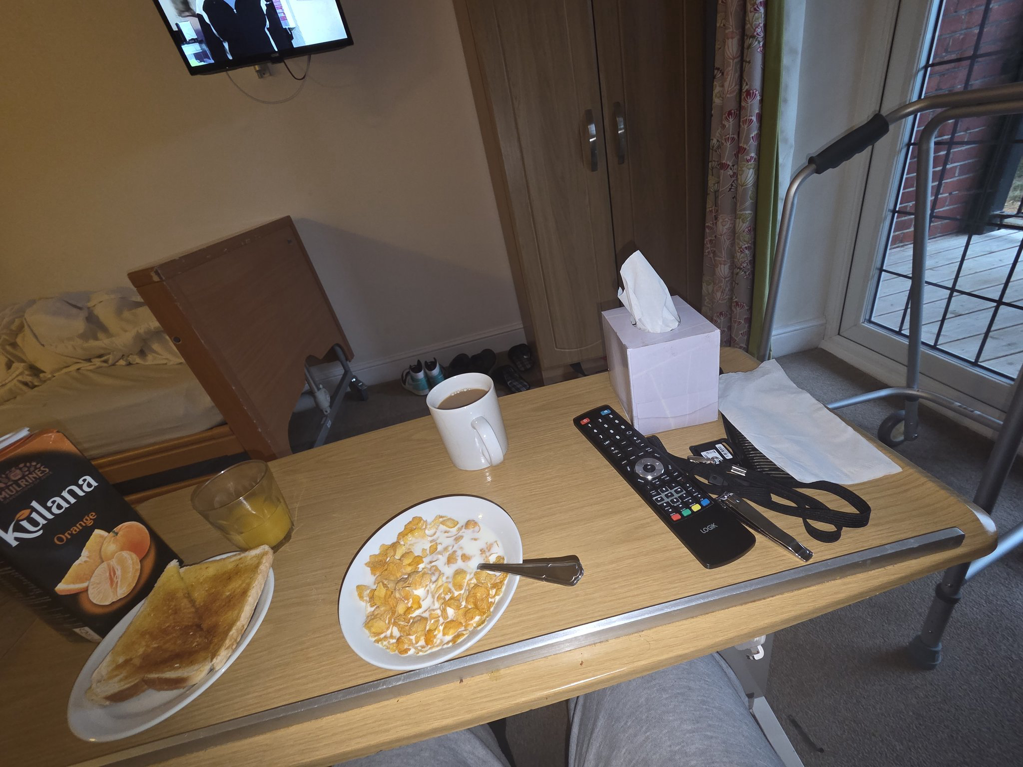 ... breakfast time wearing my excellent glasses watching Classic Coronation Street on iTV3 on TV in home ..