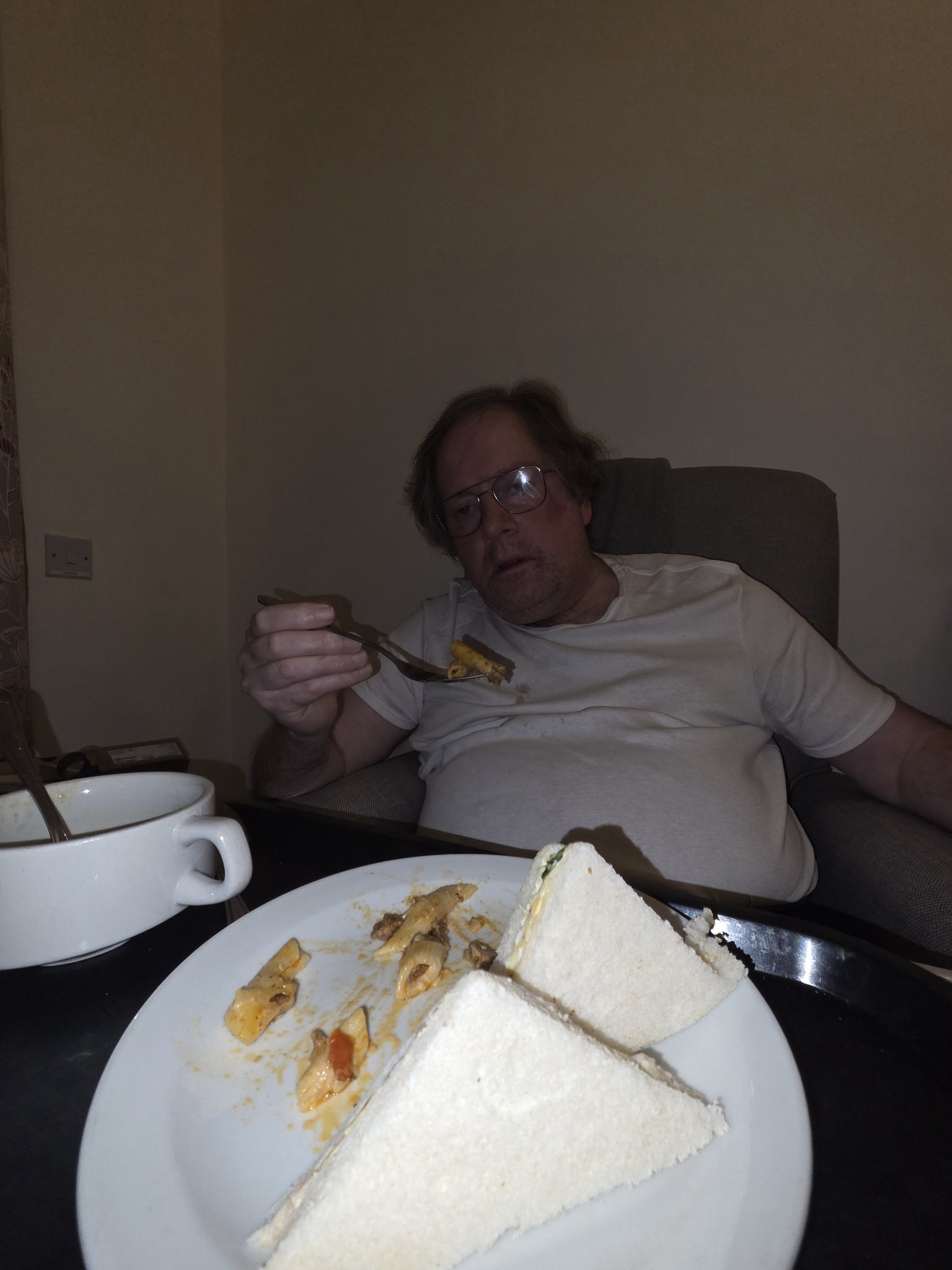... supper time wearing my excellent glasses watching Ramsay's kitchen nightmares USA on E4 extra on TV in home ..