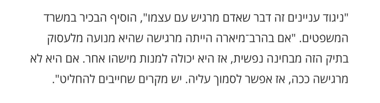 >>216475546זה יותר מצחיק אפילו>הפצ"רית המודחת סייעה למועמד שר הביטחון לתפקיד הפצ"ר, איתי אופיר, להיבחר לתפקיד היועץ המשפטי לממשלה כשהתמודד מול גלי בהרב-מיארה עם מכתב המלצה ארוך שכתבה עבורו.