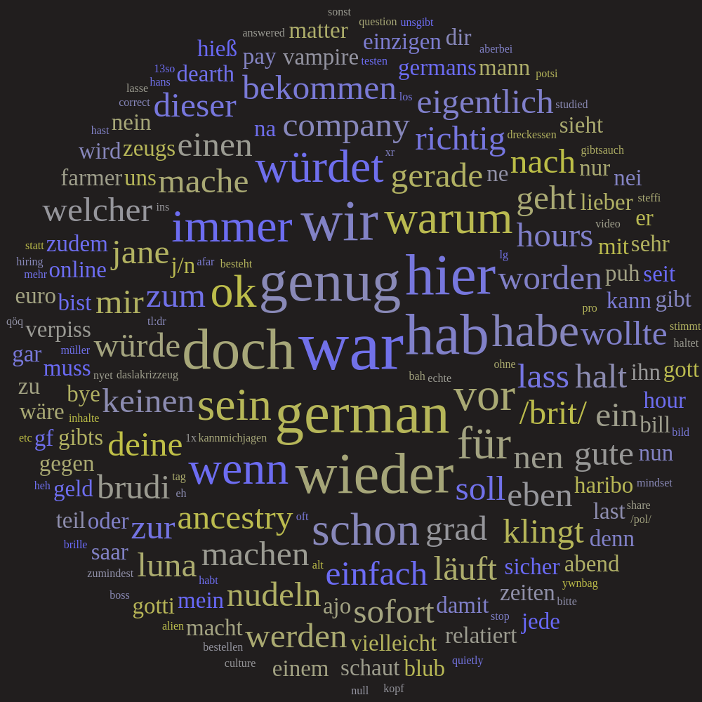 >>216506225werde noch mit den wortfiltern spielen vielleicht gibt es noch interessante einblicke