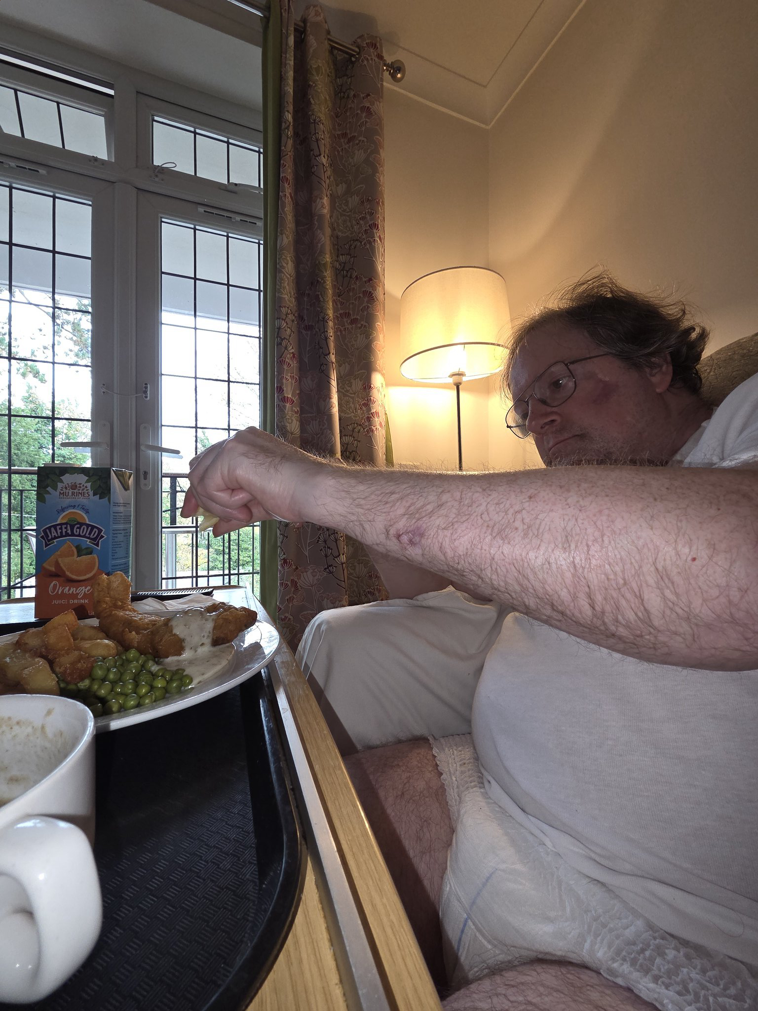 ... supper time wearing my excellent glasses watching Tennis on main event on my TV via puck in home ...