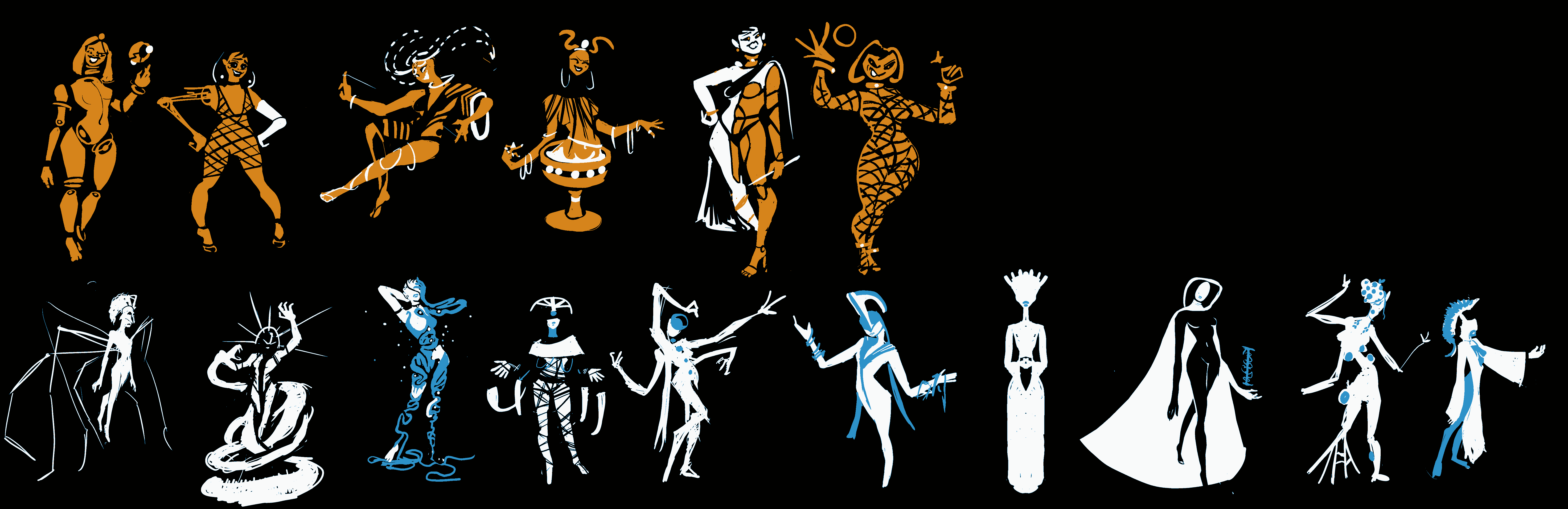 i need more ideas for variations of the woman on the top row