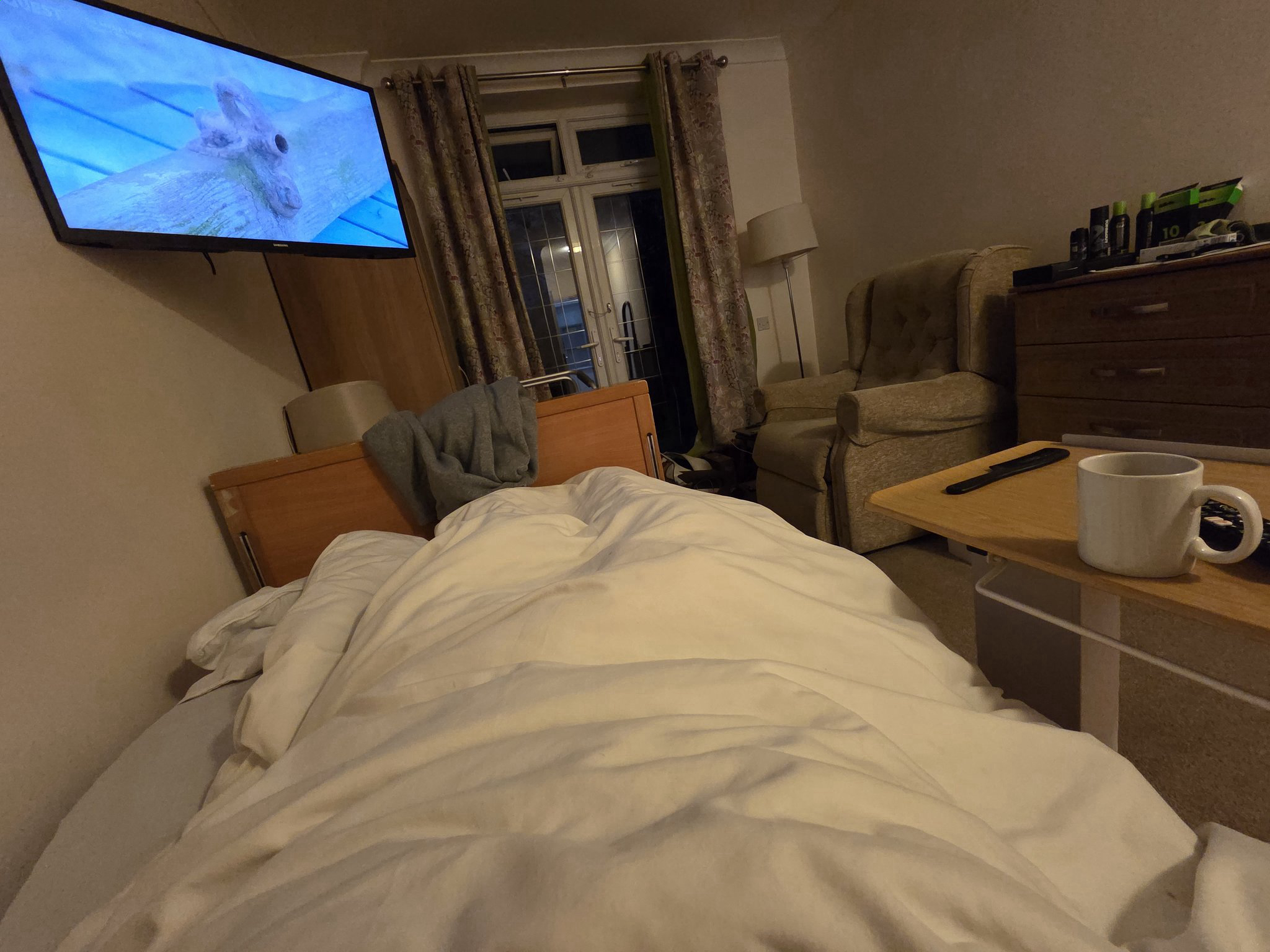 Also I'd have to get out of this very comfy bed