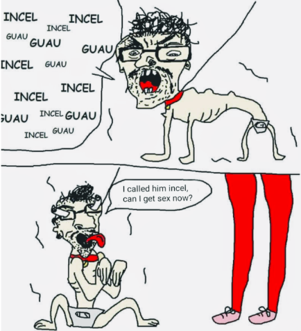 Leave him be, he thinks barking at strangers will get him some (ugly) pussy, ironically, that fag is objectifying women harder than a jewish porn actor and producers, let him live the feminist delusion.