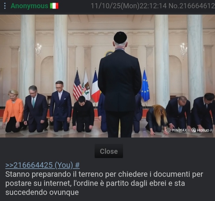 >>216668183Aspetta quando scopri che tutti i leader dell'isis sono agenti del mossad, aspetta quando scopri che tutti i vertici del nazismo erano E B R E I, e che tutti i nazisti che sono scappati in sudamerica con i passaporti del vaticano erano E B R E I mentre i gentili sono rimasti a terra a farsi estorcere le confessioni delle camere a gas con porte di legno e lampadine non isolate tramite torture genitali e dita strappate via con la minaccia di fare le stesse cose ai loro figli e alle loro mogli.Ah la foto in cui i nazsti ridono al processo di norimberga è perché dalle cuffie hanno sentito che sono stati appena accusati di aver usato pompe masturbatorie per uccidere gli ebrei.