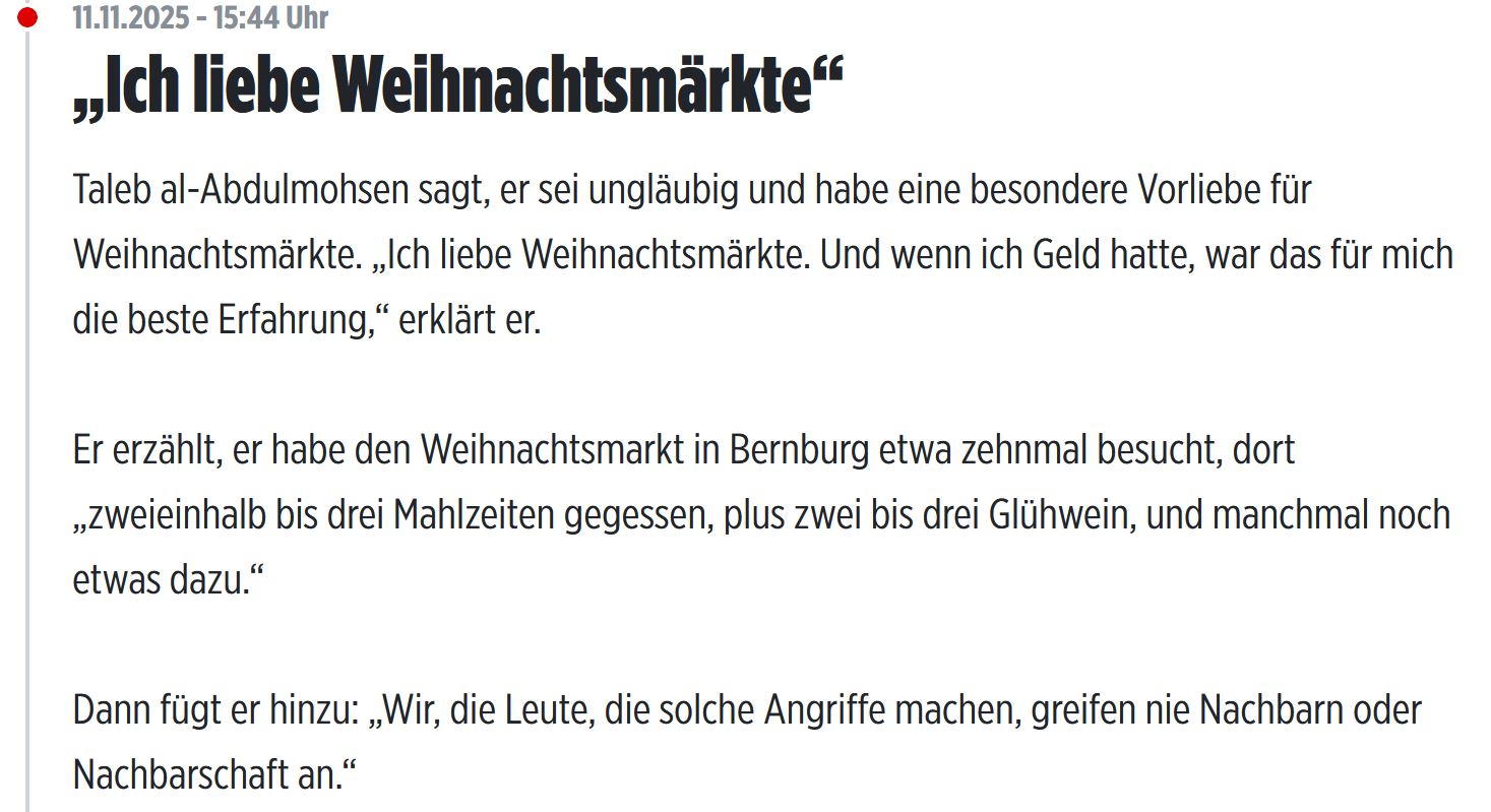 >>216683402Strafe erfüllt 3 Zwecke. Sehen wir uns das mal bei einem Moslem-Weihnachtsmarkt-Terroristen an:1. Resozialisierung. Ist nicht möglich bei jemandem, der die Gesellschaft komplett ablehnt.2. Abschreckung. Ist nicht wirklich gegeben, wenn der für sowas faul in einer warmen Zelle rumsitzen darf, während Steuerzahler für ihn sorgen.3. Strafe. Hierfür wäre alleine die Todesstrafe annähernd angemessen für das, was der getan hat.