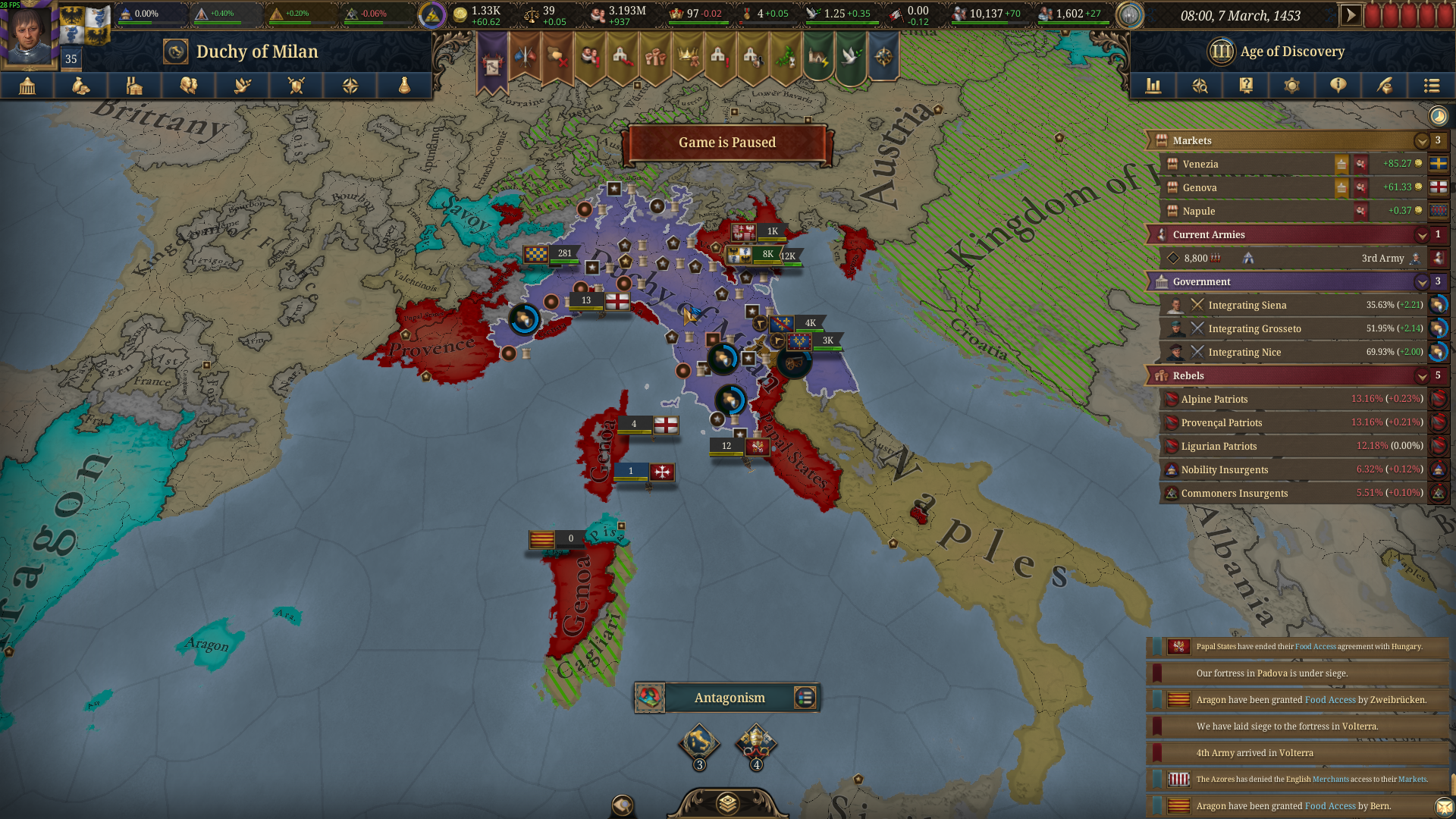 >>216734905Nah Bohemia is too far I just win battles in Italy with defensive forts on the mountains and occupy their Italian lands.I already kicked Bohemia out of Italy now I have to kick out Aragon.