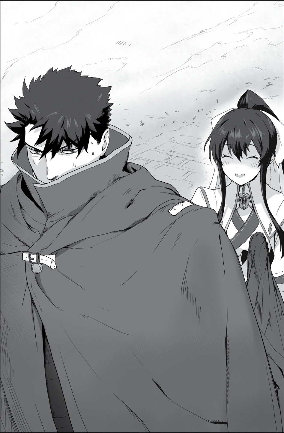 >DAWN HAD YET TO BREAK when a figure clad from head to toe in a gray cloak appeared at Kaffa’s gate. Their cloak obscured their face and gender, but they boasted quite a large build. They had walked rather quickly down the city streets, occasionally scanning the area, and overall coming off as incredibly suspicious.>Since they were headed outside the city walls, they couldn’t have been up to anything too nefarious, but their behavior still put the gatekeepers just a touch on guard. Then another figure appeared behind the first one, capturing the gray cloak in a firm grip.>“Where do you think you’re going, Mr. Loren?” asked a young woman in white priest vestments, a sweet smile plastered on her face.>This was Lapis, whom the soldiers had seen several times before. That meant the one in the cloak was likely her partner: the adventurer known as Loren.>“Leaving town so early in the morning… Are you trying to abandon your post?”>“That’s… Well, about that.”>Loren stumbled over his words as Lapis ripped off his cloak. Underneath, he wore his typical attire, though for some reason, his usual sword was absent from his back.>Upon seeing this, Lapis narrowed her eyes. She seized the back of Loren’s belt and began dragging him away.>“Ah, wait. Hey!”>“To be honest, I’m a little disappointed in you, Mr. Loren. But don’t worry, I forgive you. We’re friends, aren’t we?”