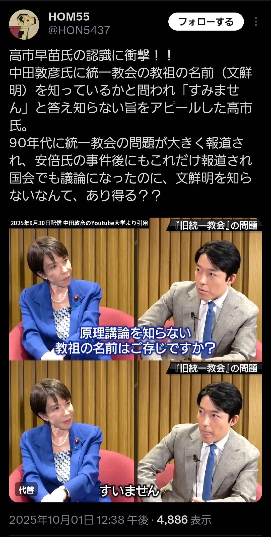 高市を応援してるネトウヨのみんなって、教会に通ってたりするんか? 協会ってのはつまり、統一の方なんだけど。