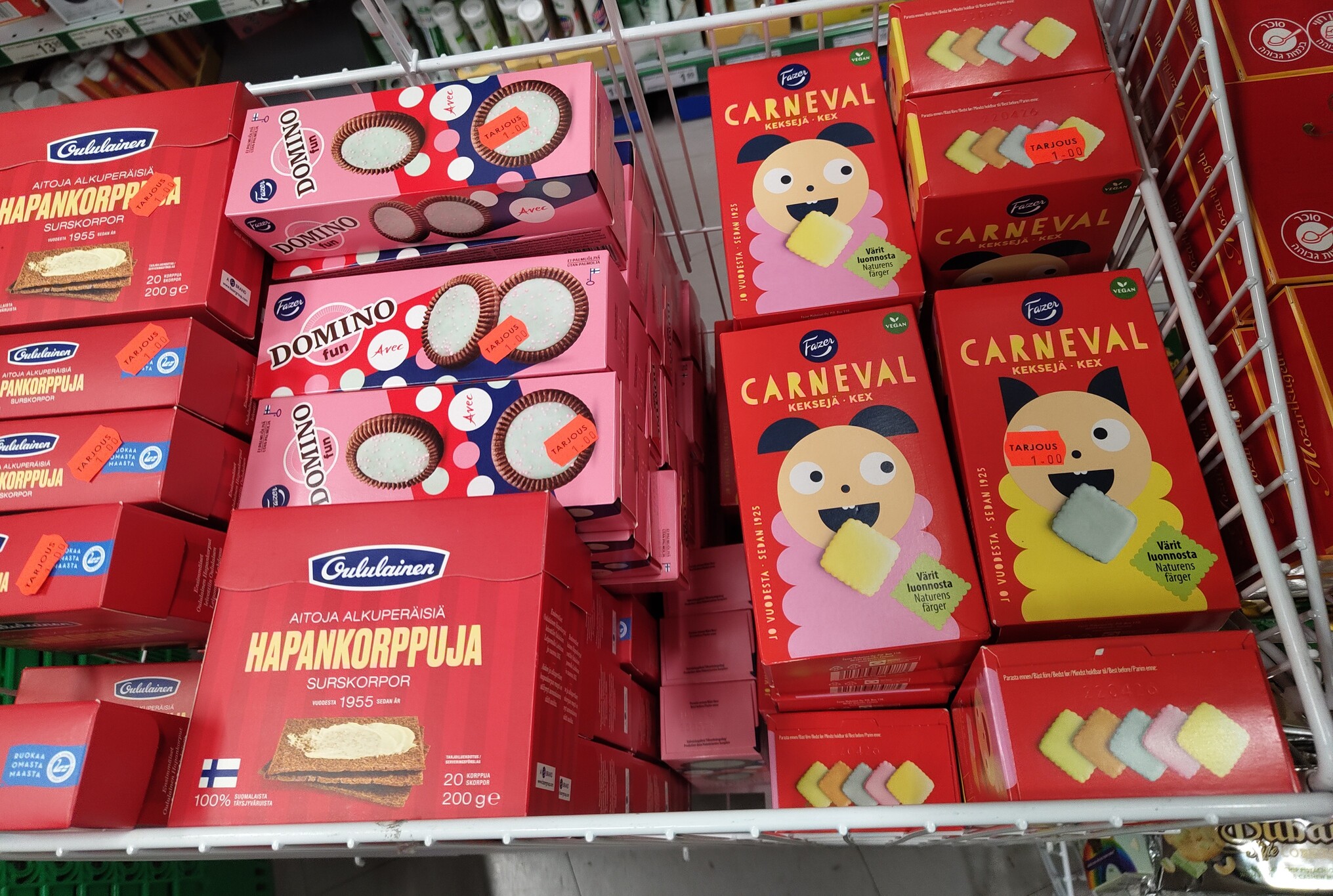>>216886390Melkein aina siellä on poistohinnoilla kaikenlaista holillista ja holitonta. Nytkin oli vieressä 0,5 spritepulloja 1€/kpl ja taisi olla jotain tehotölkkejä kanssa samaan hintaan. Oluttakin on toisinaan punalaputettuna, mutta useimmiten kaikkea muuta alkoholia
