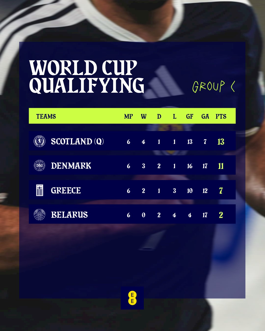 >4 shots on target>Final score : Scotland 4-2 Denmark
