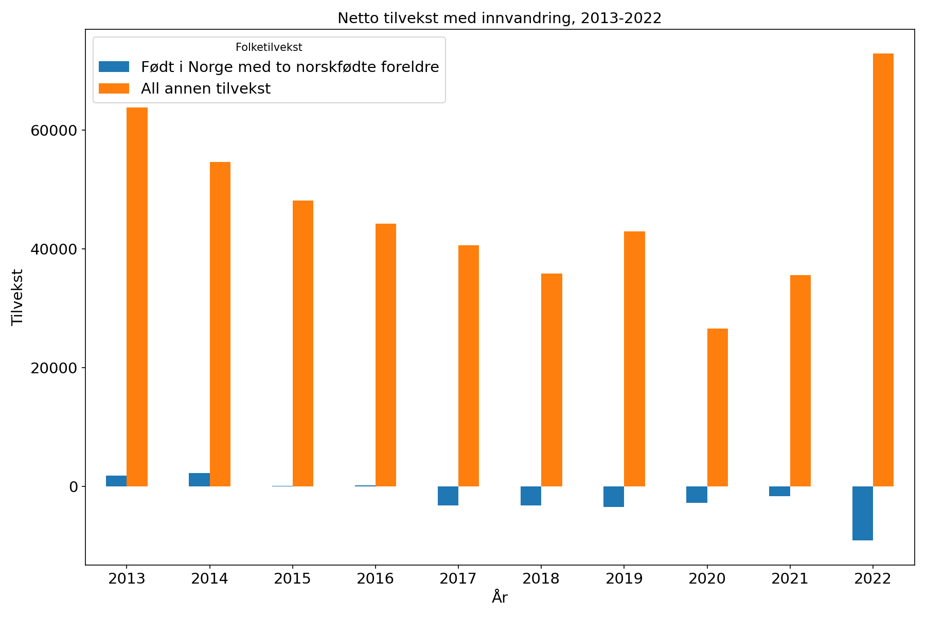 >>217002192Fra 2015 til 2024 har befolkningen i Norge økt fra 5,1 til 5,6 millioner. Samtidig har antall personer mellom 20 og 66 år økt med cirka 200.000. Hele denne økningen skyldes innvandring.