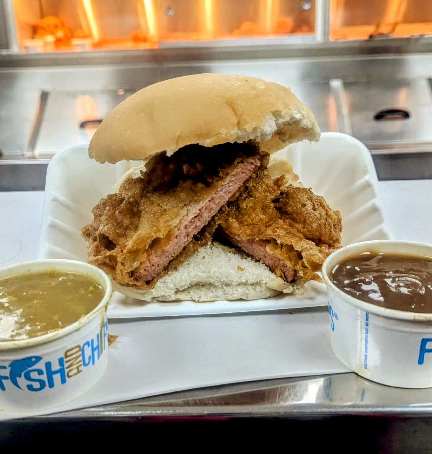Spam Fritter ButtySalt and vinegar, you're in heaven