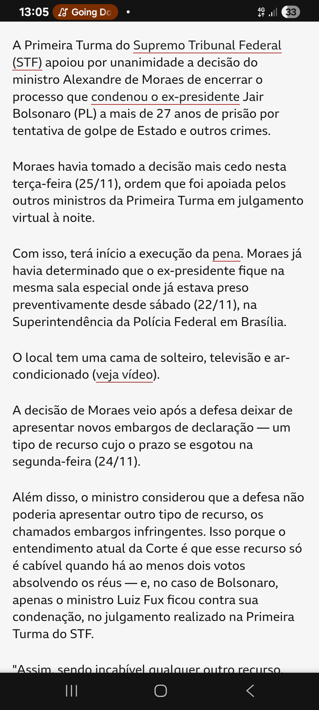 bolsonaro esta oficialmente preso de verdade agora, nada de prisao preventiva, ja ta cumprido a pena