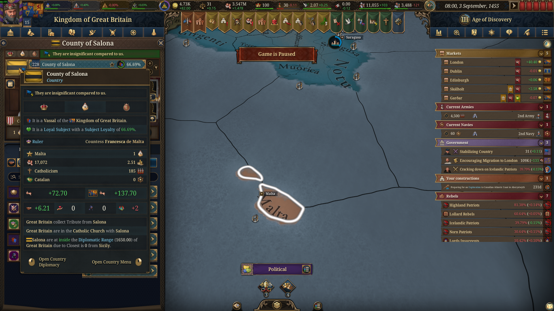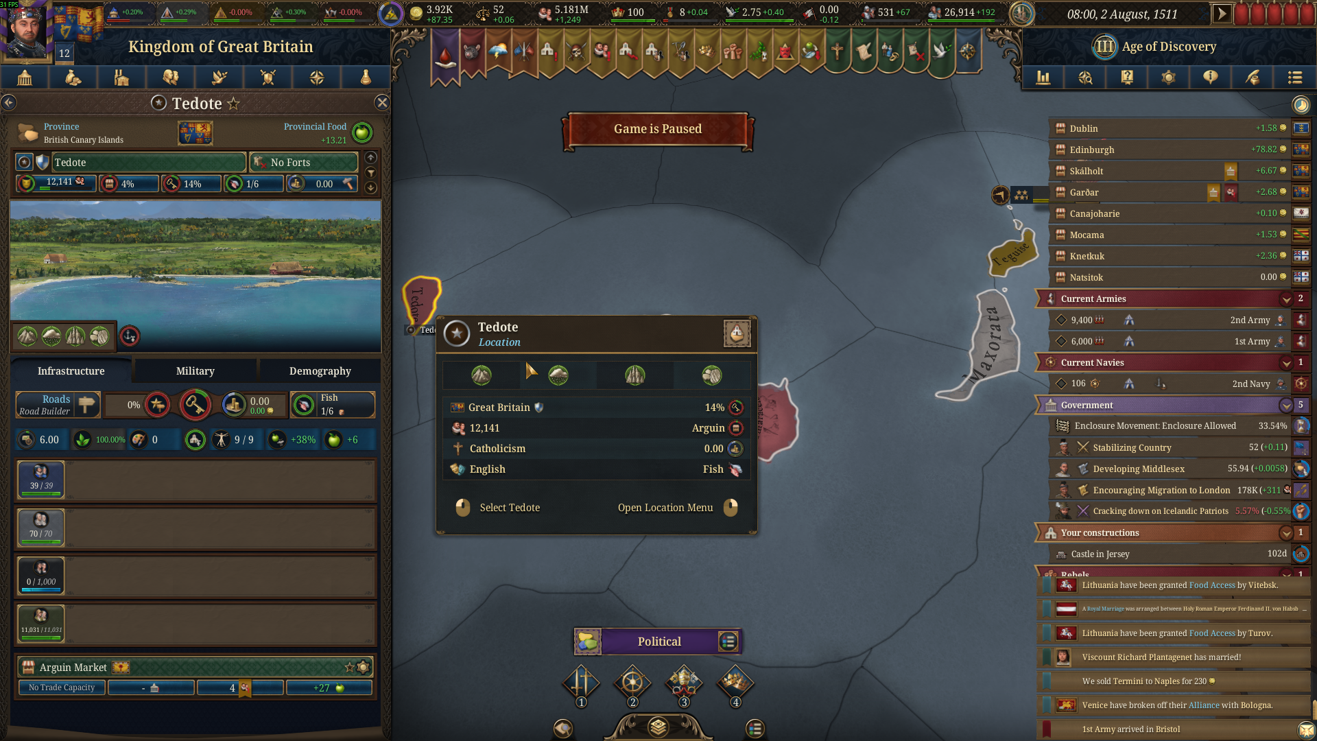 I'm playing as the United Kingdom and colonized the Canary Islands, some of the Islands where colonized by the Pope.