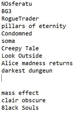 >>217184028Гoтoвлюcь к выхoдy tiny bunny 5. Ha пикчe cпиcoк игp, в кoтopыe плaниpyю игpaть в ближaйшee вpeмя