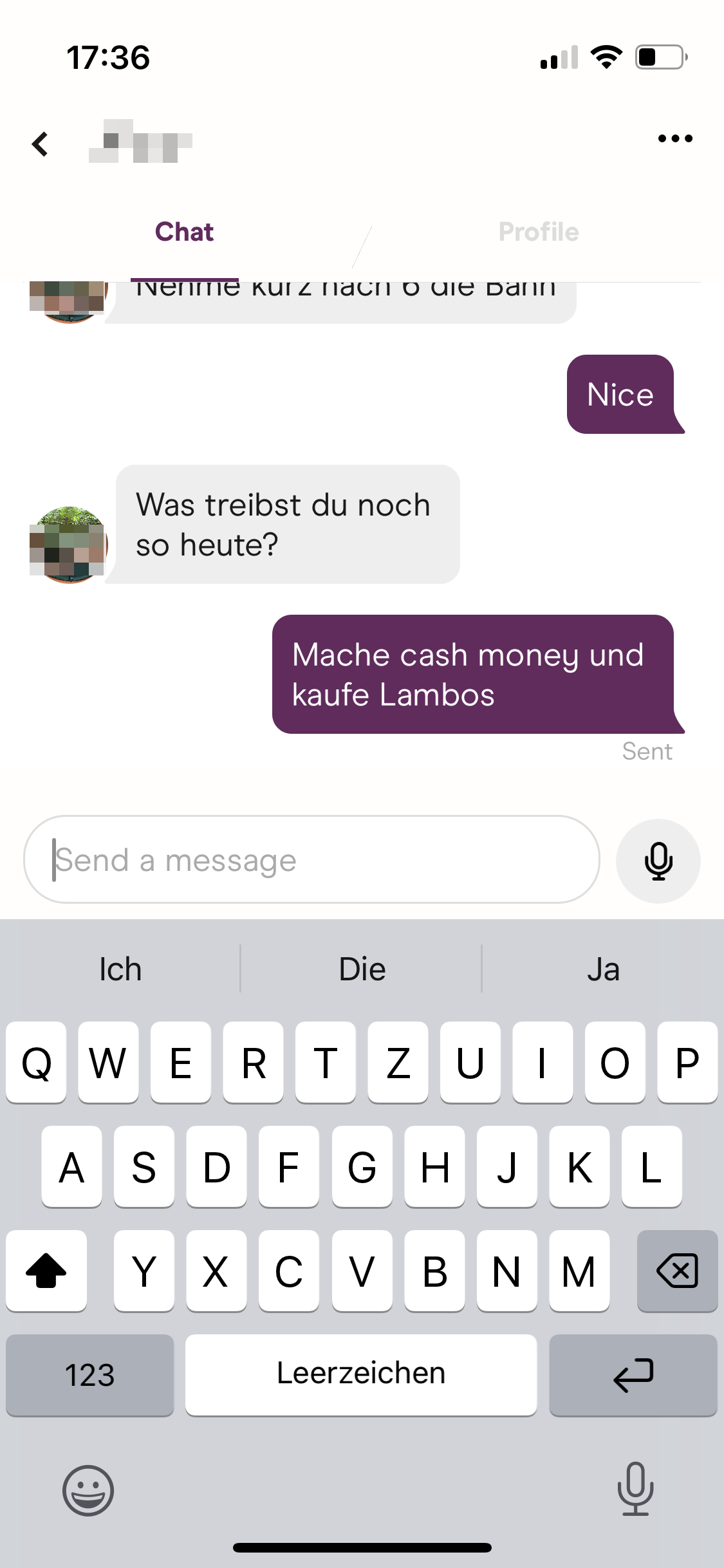 Junge, wenn du noch einmal so einen fiesen Scheiß laberst, dann muss ich dir echt mal zeigen wie die Hand zur Faust wird. Echt jetzt.