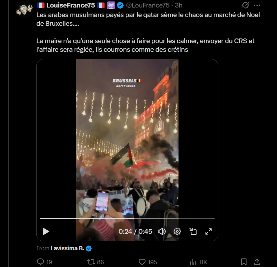 >>217191229>payés par le QatarIls le font gratuitement, ils sont littéralement la majorité dans BruxellesCe n'est que le début, ce Noël en Europe va être intéressant
