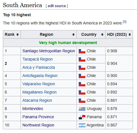 >>217192248We're not the richest, that's Uruguay in nominal terms if you're talking Latin America. If you mean South America then that's Guyana by far.We're the most overall developed country in this meme continent.Poorer than Eastern Europe? Yes, but we outperform them in some positive indicators.>Pic: 7/15 of our regions have the most developed humans in this entire meme continent.