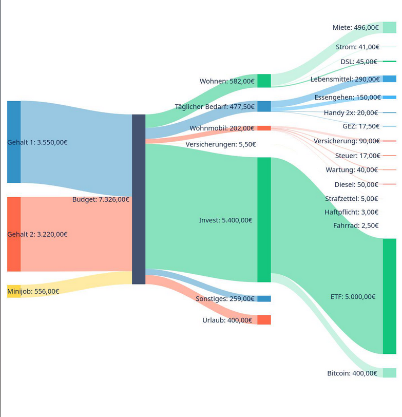 Hab mich mal an einer aufstellung für mich und meine Freundin (beide 35) versucht, wir wohnen auf ca 50qm in zentraler Lage in einer größeren Stadt in Ostdeutschland. Ich mach noch einen Nebenjob der mir viel Spaß bringt, bin aber am überlegen ob ich noch mein PhD machen soll... finanziell lohnt das aber eher nicht.